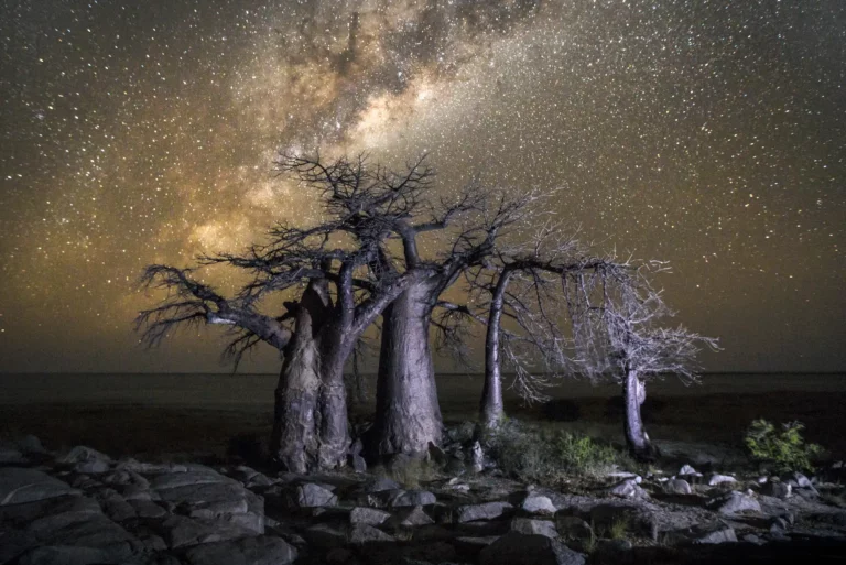 Il Botswana, con il suo leggendario Delta dell’Okavango, rappresenta un’altra destinazione di primo piano per gli amanti del cielo notturno. Durante la stagione secca, da maggio a settembre, le condizioni sono ideali per osservare le stelle: il clima è secco e le notti sono estremamente limpide, permettendo di ammirare la Via Lattea e le costellazioni dell’emisfero australe con una chiarezza sorprendente. I safari notturni, organizzati dai numerosi lodge e campi tendati, offrono l’opportunità di vivere la magia del cielo stellato lontano da qualsiasi fonte di inquinamento luminoso, spesso combinando l’esperienza astronomica con quella della fauna selvatica. Nel cuore del delta, i viaggiatori possono esplorare isole remote e rilassarsi sotto la volta celeste, mentre le guide locali condividono racconti e leggende sulle stelle, tramandate dalle culture indigene come quella dei San. Ma forse il posto ideale per ammirare le meraviglie dell’universo è Kubu Island, una piccola isola rocciosa situata nel cuore del Makgadikgadi Pan, uno dei più grandi complessi di saline al mondo. Questo luogo remoto e affascinante, circondato da un paesaggio surreale di saline bianche e alberi di baobab secolari, offre condizioni eccezionali per l’osservazione astronomica grazie all’assenza totale di inquinamento luminoso e alla purezza dell’aria del deserto. Di notte, la superficie bianca delle saline riflette la luce delle stelle, creando un effetto visivo unico che amplifica la sensazione di trovarsi immersi nel cosmo. Kubu Island, oltre a essere una meta straordinaria per gli amanti del cielo notturno, è anche considerata un luogo sacro dalla popolazione locale dei Bakalanga, il che aggiunge una dimensione spirituale all’esperienza di contemplare la volta celeste da questo sito. È consigliabile organizzare il viaggio con attenzione, poiché si tratta di una località remota che richiede veicoli 4×4 e una buona scorta di acqua e viveri. Chi decide di campeggiare sull’isola può godere di notti indimenticabili sotto un cielo tempestato di stelle, accompagnato dal silenzio assoluto del deserto. Le temperature notturne possono essere fredde, quindi è importante portare con sé abbigliamento adatto. Kubu Island rappresenta una vera e propria avventura per gli appassionati di astronomia che cercano un luogo magico dove la natura incontaminata e il cielo notturno si fondono in un panorama di pura meraviglia.
