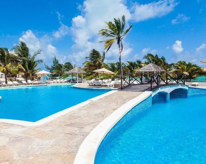2 bar di cui uno in spiaggia, wi fi in aree comuni, piscina di acqua di mare, beach volley, beach tennis, bocce e anfiteatro. A pagamento: cambio valuta, reperibilità medico h24, boutique/bazar, Spa e Centro Benessere con trattamenti per il corpo e per il viso. Diving center e kitesurf esterni al Resort con assistenza in italiano.