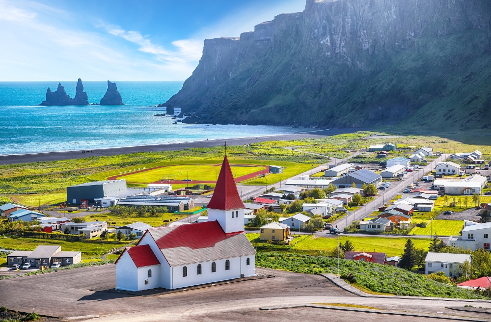Trasferimento quindi verso la regione meridionale dell’Islanda in direzione del villaggio di Vík con alcune ulteriori soste lungo il percorso: alla cascata di Seljalandsfoss, molto pittoresca con i suoi 62 metri di altezza e con la possibilità di camminare nella cavità dietro allo scroscio d’acqua (munirsi di scarpe e vestiti impermeabili) e a Skógar, dove si trova la cascata Skógarfoss, una delle più alte del Paese e conosciuta come “il velo della sposa”.