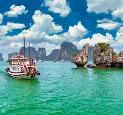 Tra i suoi luoghi più evocativi, Halong Bay si staglia come un quadro vivente: migliaia di isolotti calcarei emergono dalle acque color smeraldo, creando uno scenario che sembra sospeso tra realtà e leggenda. Qui, il tempo scorre lento tra le grotte segrete e i tranquilli villaggi galleggianti, dove ogni istante è un invito alla meraviglia.