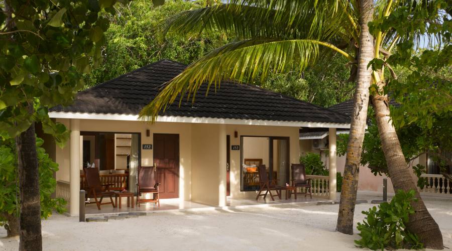 - 138 Beach Villa da 54mq tutte disposte lungo il perimetro dell'isola a pochi passi dalla spiaggia e dotati di veranda, bagno con vasca e bidet, e doccia maldiviana open air, e free wi-fi. L'interno è provvisto di letto matrimoniale o due letti singoli, e dotato di aria condizionata, ventilatore a pale, televisore, cassetta di sicurezza, minibar, asciugacapelli, telefono e wifi. La maggior parte dei bungalow sono bifamiliari, mentre solo alcuni sono singoli. Alcune camere sono interconnesse con una porta di collegamento e sono ideali per le famiglie numerose. Nelle camere vengono fornite 2 bottiglie d'acqua al giorno gratuite per gli ospiti.