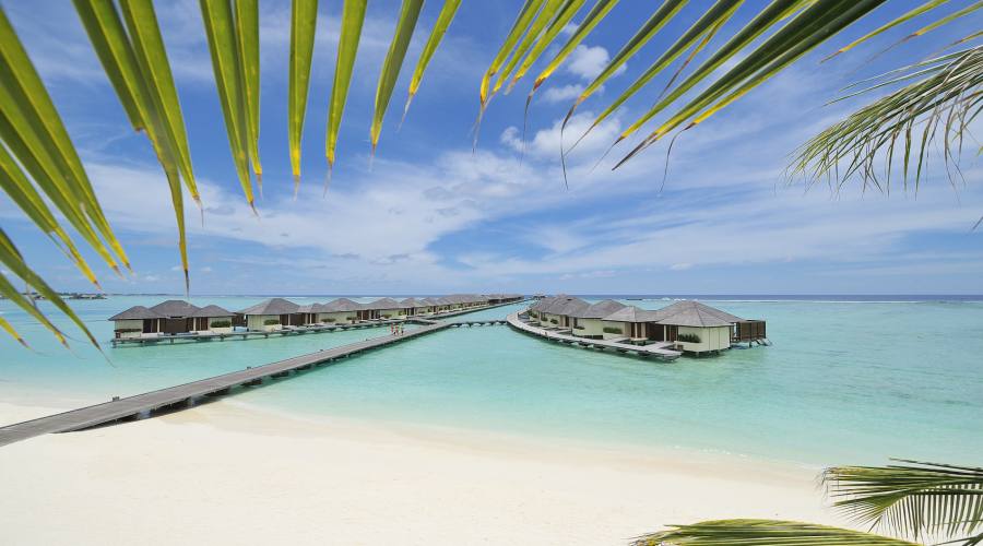 Nel lato est dell'isola un lungo pontile porta alle sistemazioni overwater, affacciate sia verso l'alba che al tramonto. Queste ville sono di livello superiore rispetto a quelle sulla spiaggia, e sono dotate di aria condizionata, ventilatore a pale, televisore al plasma, cassetta di sicurezza, minibar, telefono, bollitore per tè e caffè, terrazzo con tavolo e sedie, lettini prendisole e discesa a mare, elegante bagno con doppio lavabo, doccia e bidet. In particolare:
